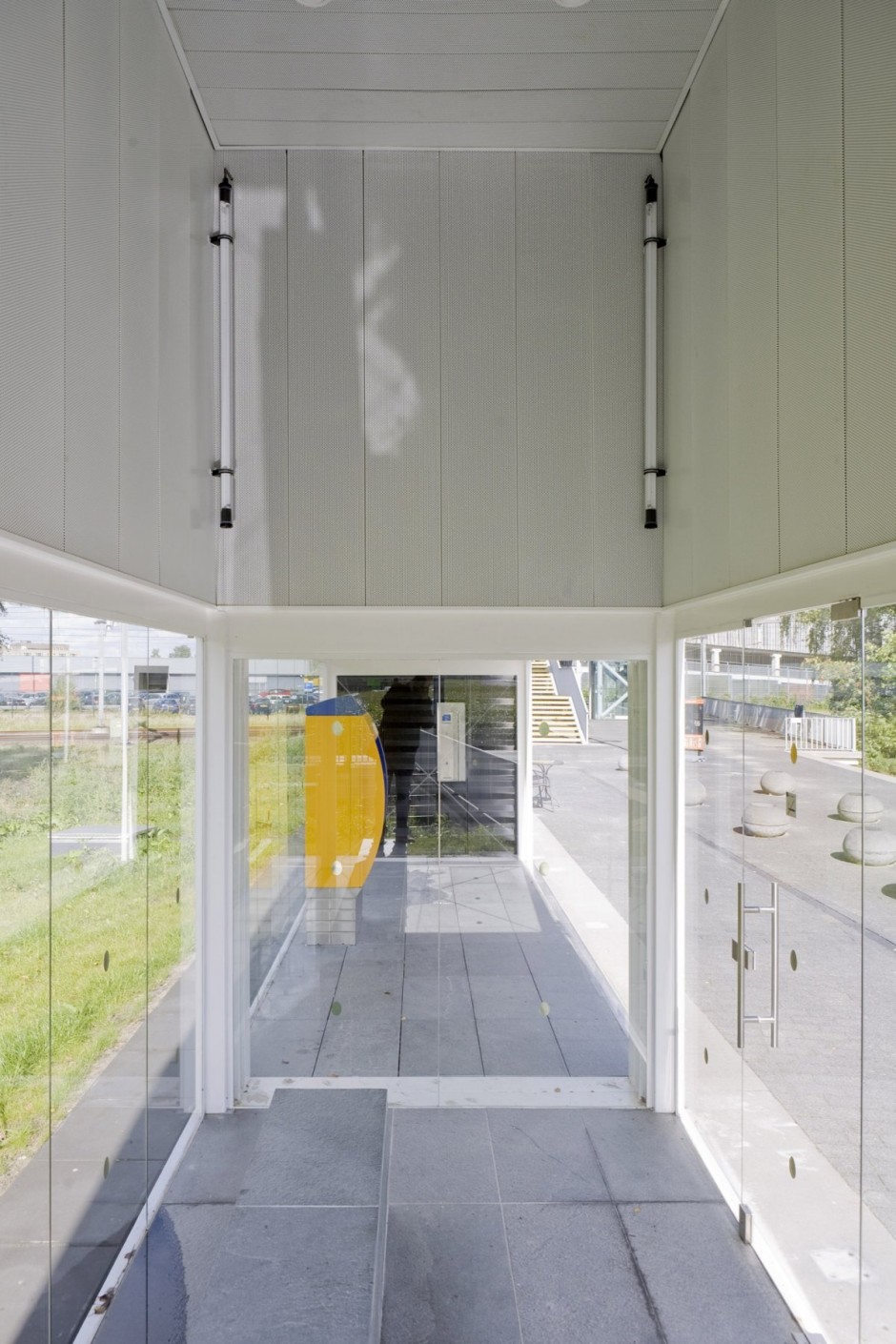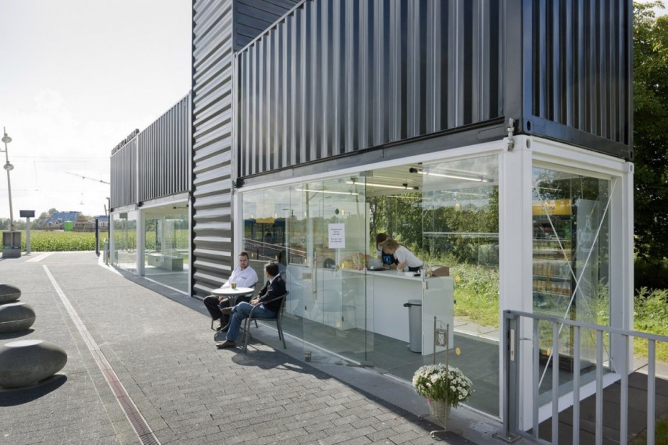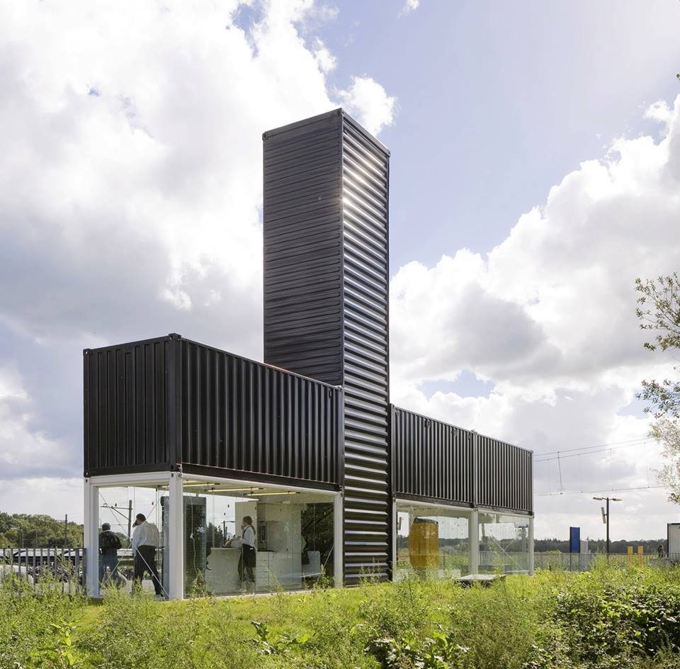 Malgré une forme en croix, ce lieu n’est pas une église. Il s’agit d’une station de chemin de fer en Hollande. Cette station fait partie d’un projet global appelé Prettig Wachten (attendre confortablement) mené par ProRail, en charge de la gestion des stations de chemin de fer. Selon les besoins, la structure peut intégrer une présence humaine (ou pas), un café ou un magasin (ou pas) … Il fournit en tous cas un endroit rassurant, à l’abri des intempéries, confortable aux voyageurs en attente. Un mélange parfait de fonctionnalité, de modularité et d’esthétique.