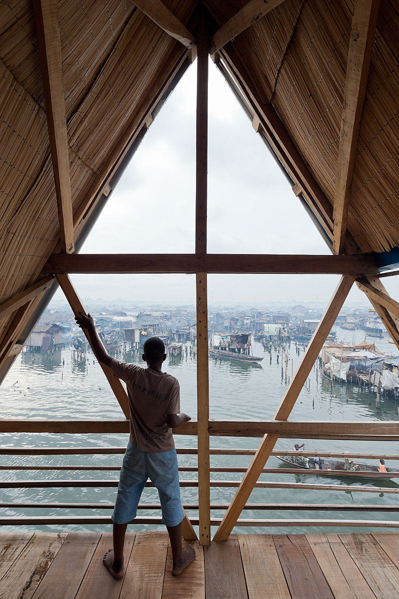 Lagos est connu pour être l’une des villes la plus peuplée d’Afrique et sa lagune est malheureusement connue pour la population de pauvres et de délaissés qu’elle abrite. Pour les enfants de ces familles, aller à l’école, c’est hors de question: trop compliqué, trop coûteux. La solution apportée par cette école flottante est la plus simple et la plus intelligente à la fois. Il peut accueillir 100 enfants dans des espaces séparées. Une très belle innovation.
