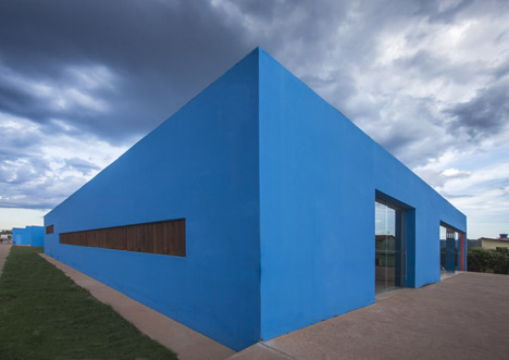 You are in front of the outside walls of the Cachaças Museum in Salinas, Brazil. Cachaças is typical alcohol drink from Brazil, usual base to the well-known caipirinha. The museum is created from several buildings that the architect has very boldly linked together with this amazing blue color. So, did you guess ?