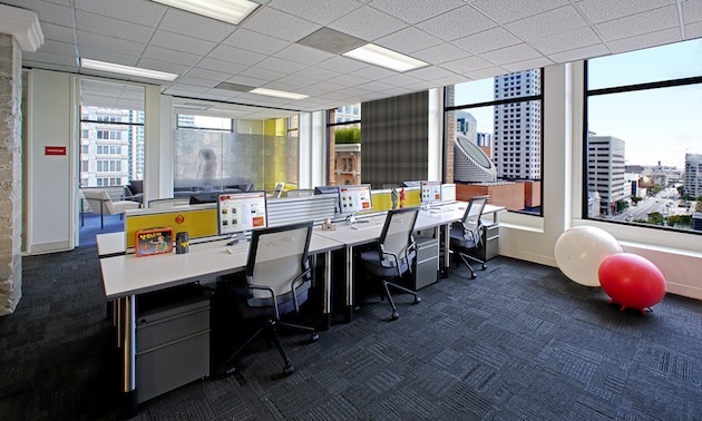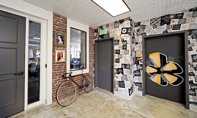 L’intérieur d’un appartement un peu trendy ? Pas du tout. Vous êtes dans les locaux de la société Yelp, à internet. Yelp.com est un site de recherche des meilleurs endroits dans les grandes villes du monde. Et leur côté cool ressort immédiatement dans la décoration de leur siège californien. Bienvenue chez eux!