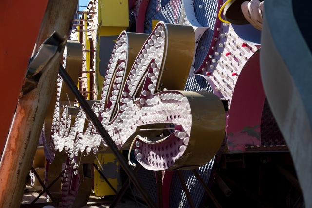 With all the lights, the neon and the images on the Strip and on Fremont Street, the artificial lights are everywhere. And where do the old lights go when they are no longer needed ? To the Neon Museum Boneyard.