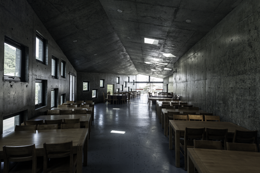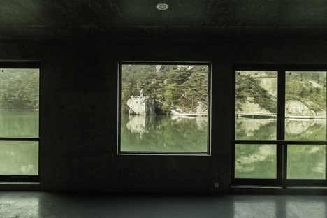 C’est un lieu contemplatif pour profiter de l’une des cinq montagnes sacrées de Chine; c’est une maison totalement insérée dans la montagne, dont la forme s’incurve le long de la berge et suit les parois rocheuses derrière le bâtiment; et enfin, c’est aussi une maison qui héberge un restaurant, un salon de thé, des chambres pour les voyageurs et une pièce de méditation exactement au niveau de l’eau. Ce lieu va certainement faire partie intégrant de l’expérience de la montagne sacrée.