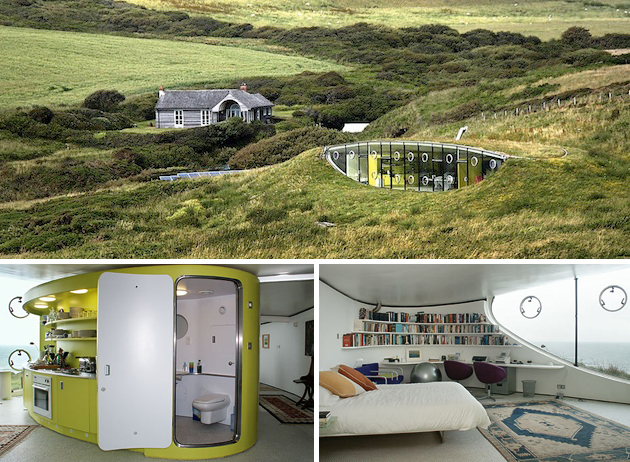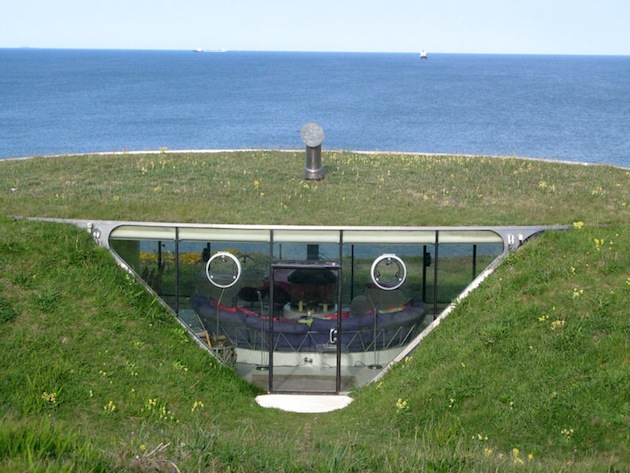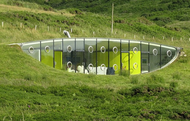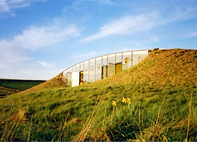 Insert a house between two hills, what a strange idea … Use the ground as an insulator and open the rest of the house to the outside, what a strange idea … And this impressive result dates from 1998.
