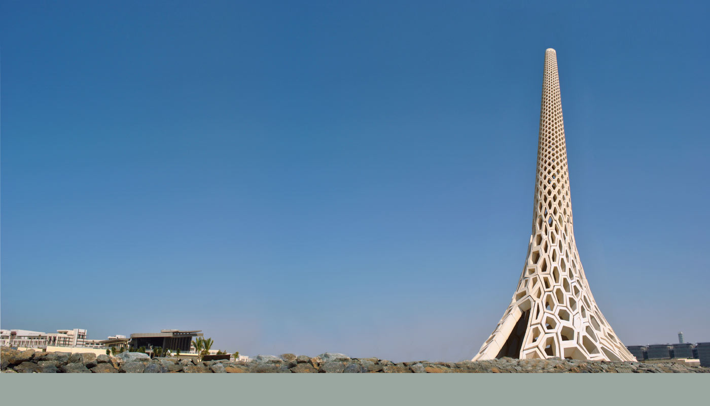 Ce phare sert également de signe de reconnaissance pour l’Université de Science et de technologie du roi Abdullah située juste à côté. Sa structure, haute et allongée, est étudiée pour faire remonter rapidement l’air chaud et accueillir amplement l’air maritime plus tempéré. Et ainsi maintenir naturellement une température agréable. Cela permet à ce lieu d’être également un lieu événementiel.
