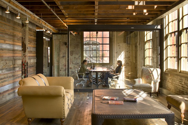 Urban Outfitters and its sister brands, Anthropologie and Free People, all share an aesthetic that combines rusticity, delicacy and ecology. No wonder that their headquarters is a former Navy Shipyard site. It includes the rustic materials of industrial places (brick, stone and beams) and mixes them beautifully with fabrics, colors and green spaces. A great brand and branded campus !