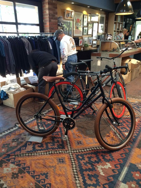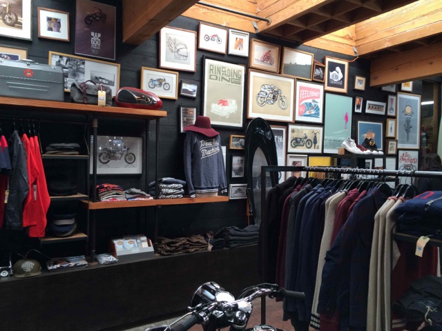 With a bike custom workshop at the back of the store, the Deux Ex Machina is one-of-a-kind store: it sells bikes, cycles, shirts, jeans, books and accessories. The atmosphere is quite comfortable with carpets, wood and rough materials (cement, hard wood …) in a variety of gray colours. You can also enjoy a great coffee, pastry or light meal. You can work thanks to the free-wi-fi or have a good time with the evening barbecues. More than a place to shop, a place to spend a great time in.