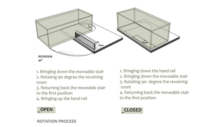 The Sharifi-Ha house in Teheran is an amazing creation: the facade rooms of all three levels can rotate to create more space for the inhabitants. All this with just by pushing on a button. Flexible and adaptable, a new definition of home ?