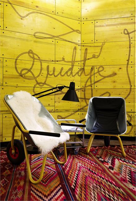 Young spirit, yellow inspiration, the new Superbude design-hostel is worth seeing. Inspired by the roots of Hamburg (journalism and creativity), the decor does not only create an atmosphere, it emphasizes the recycling of many objects. Have you noticed the wheelbarrow?