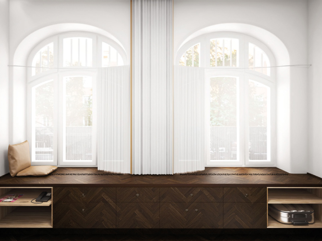 Ancré dans l’histoire Art Nouveau et l’âme du bâtiment, une ancienne institution de jeunes filles, le nouveau design ajoute délicatesse, élégance et sophistication modeste à ce que ce mouvement artistique promettait. Les formes organiques arrondies, les couleurs blanches très pures et les matériaux naturels solides, un mélange parfait qui crée une atmosphère unique. Un vrai plaisir.
