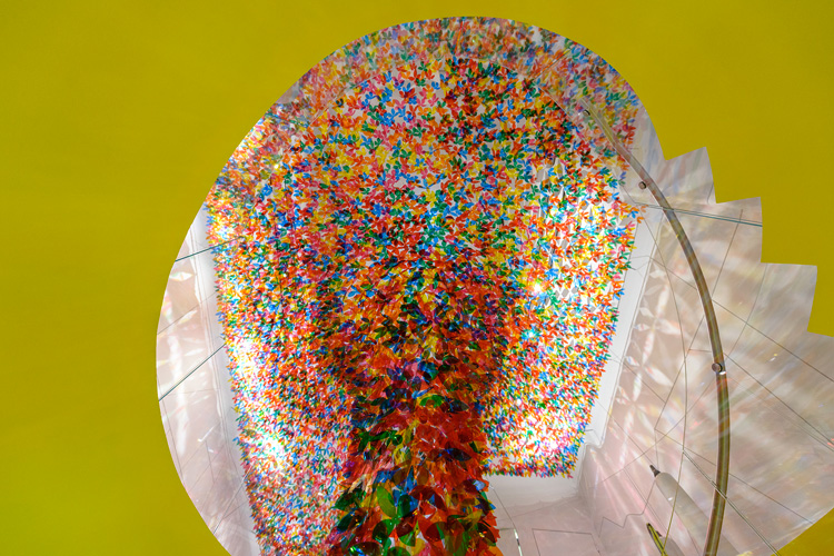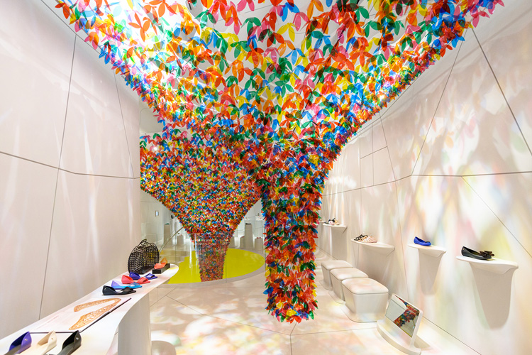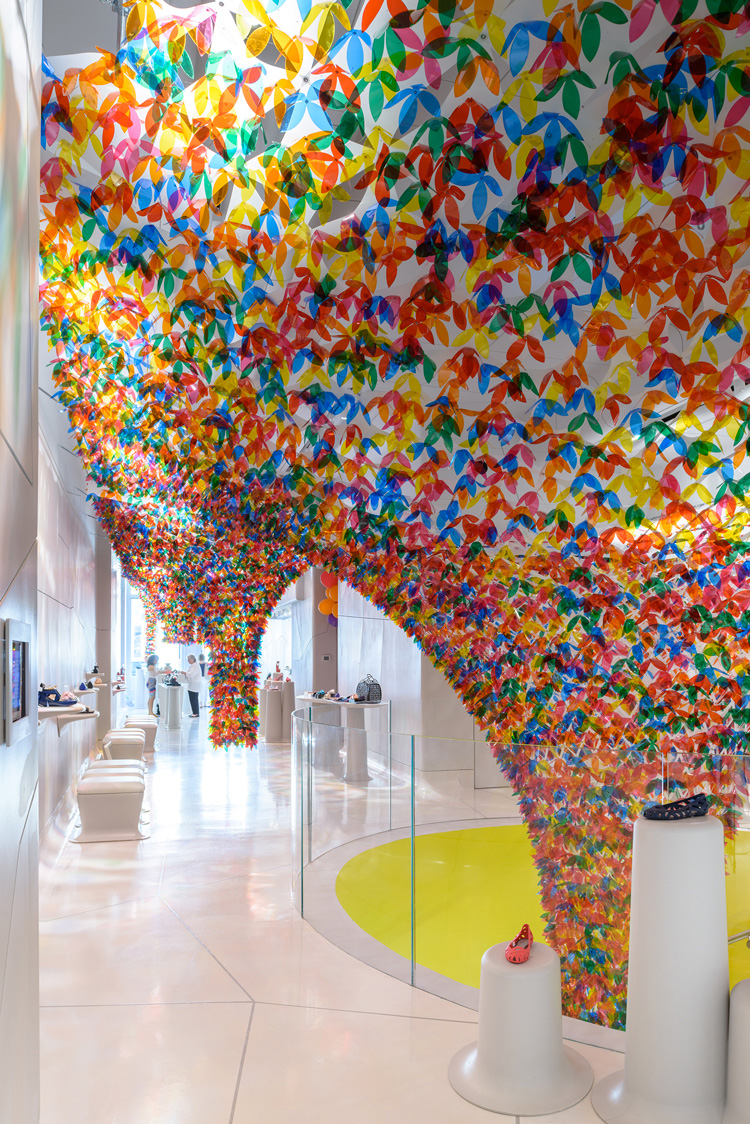 Cette belle installation artistique, «Nous sommes des fleurs”, est certainement très visuelle et attractive. Il est clair que les curieux attirésaugmenteront certainement les ventes du magasin. Votons donc pour davantage d’art dans les magasins …