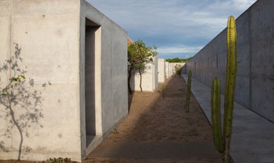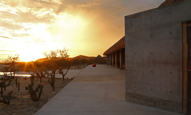 This beautiful place is an art foundation, the Casa Wabi, created by Tadao Ando. A large complex, it includes six freestanding residences, two studios, an exhibition space, several multipurpose spaces, and a 67-acre botanical garden set to become the foundation’s outdoor contemporary art collection. The Foundation is an artists residence and runs social and education programs