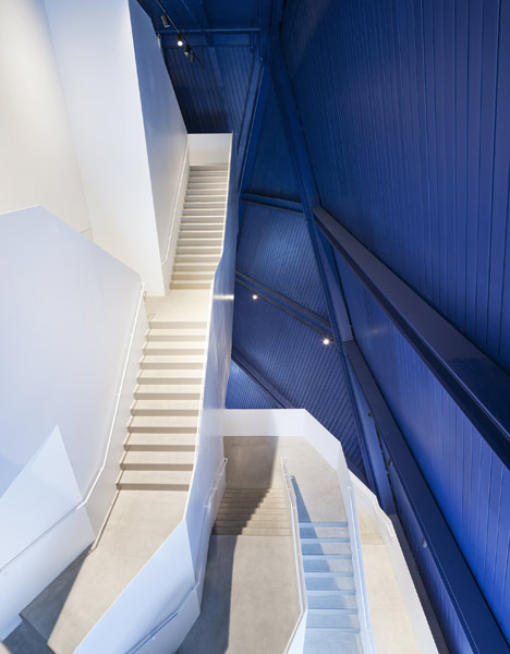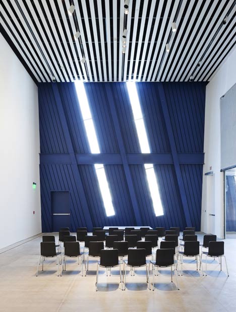 A blue-cube museum. Simple to understand inside and outside. A non-collecting museum (art is in, then out). Minimalist yet efficient.