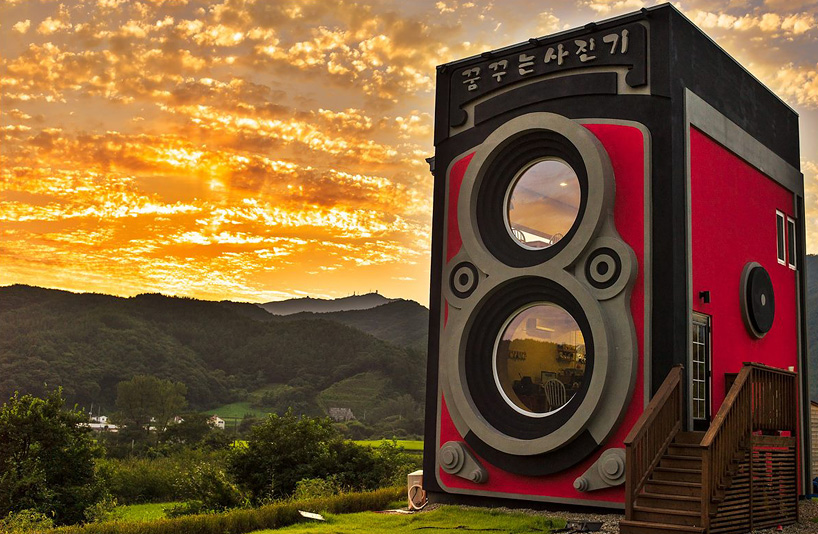The idea of a creating a coffee shop shapes like a vintage Rolleiflex camera is amazing, but unfortunately it does not go beyond the look of the house: no service difference from a regular coffee-house, no specific vintage drink offer … Just a fun, strange building and therefore not a truly different client experience. Too bad.