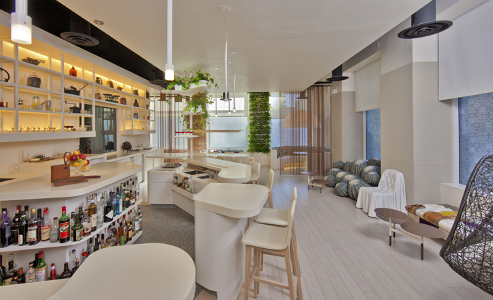 Un mini bar très loin des couleurs sombres, des éclairages indirects et des gros chesterfield. Un mini bar pourtant très pointu et très agréable. Goûtez-y la fameuse “Margherita à l’air salé” du célèbre José Andrès, au bar ou dans le canapé “cactus” de Cerruti Baleri, dans la lumière du jour et la clarté …