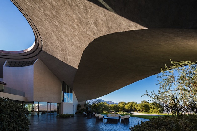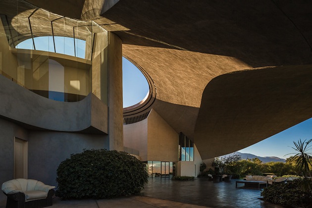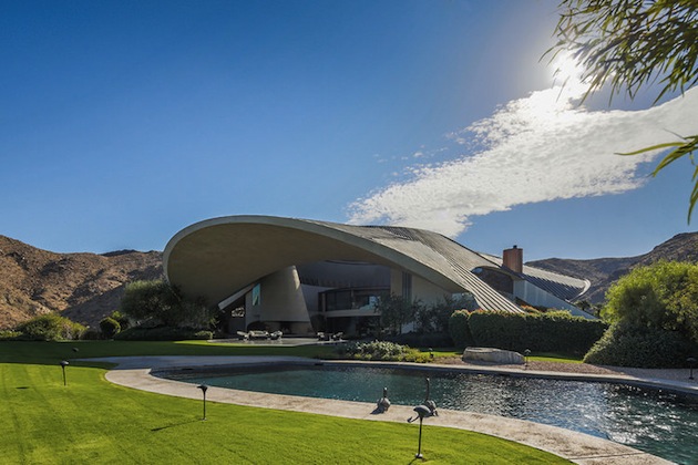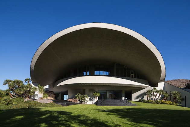 Cette maison de 22.000 pieds carrés est la maison de fête de Bob Hope à Palm Springs. Des espaces immenses, ouverts sur la chaleur du désert, sur le ciel étoilé et sur des cheminées géantes. Un endroit dédié à la réception de grandes assemblées, de folies et des soirées incroyables. La créativité du génie John Lautner à son paroxysme. Elle est à vendre depuis quelques jours à 50 millions de dollars. Démesurée sous tous les angles …