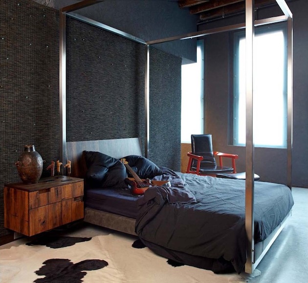 Decoration-wise, men apartments are too often a mix of brown wood, raw materials, and rustic yet comfy relaxation areas (jacuzzi, fireplace and cozy living room). This systematic approach creates often cold places. At the heart of this trend, this loft in New York succeeds in adding a different soul to those elements: a little Texas feel in the usual New York sophistication.