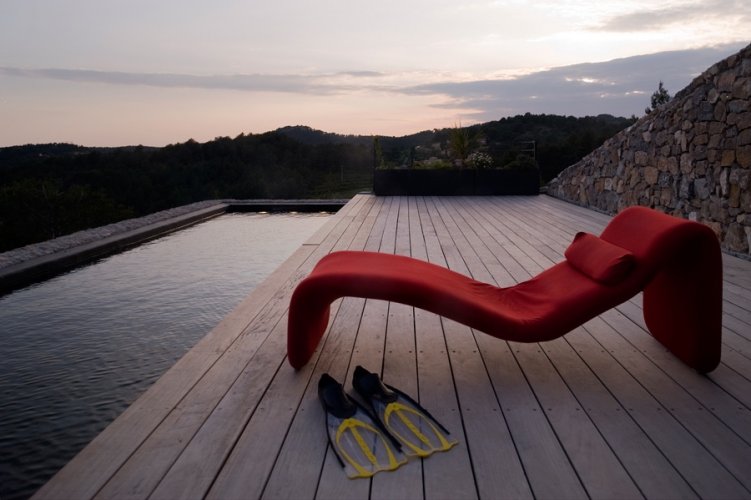 A home in the sun must have a pool. And when the house is along the pool, as a part of the hill facing South, the house becomes a nest in the sun. A gorgeous place where we would all spend our summer.