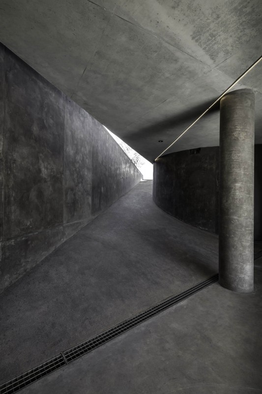 Amazing, isn’t it? And the interior is even more (click on the slide show to see larger pictures). This is a fire station. Fitted in caves in the mountains, it combines the modernity of its facade and its bold dark colours with the hardiness of its stone walls. Impressive.