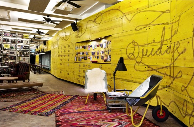 Young spirit, yellow inspiration, the new Superbude design-hostel is worth seeing. Inspired by the roots of Hamburg (journalism and creativity), the decor does not only create an atmosphere, it emphasizes the recycling of many objects. Have you noticed the wheelbarrow?
