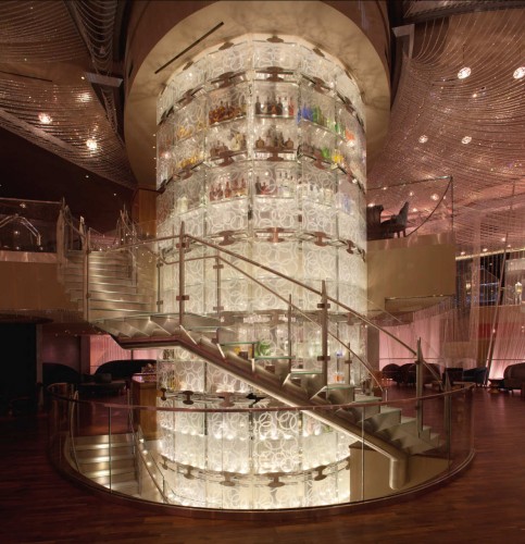 Then the place turns into a long and large corridor proposing slots machines, various games (with a nice High Limit area), in a very classical Las Vegas way, and bars, including the famous “Chandelier bar”. This great bar idea (a three storey “floating” bar) is wonderfully designed but absolutely spoiled by the location as it is stacked in the center of an open rotunda, between escalators and slot machines.