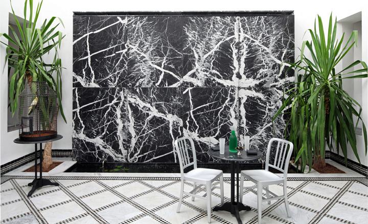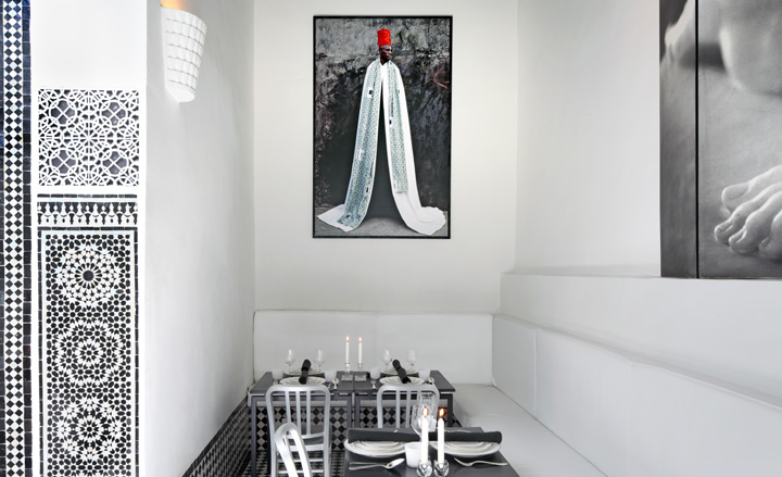 Le Maroc a une vie contemporaine comme le montre magnifiquement ce salon de thé/ restaurant de Fez. Cette épure noire et blanche apporte modernité et élégance, tout en respectant parfaitement les racines graphiques de ce pays.
