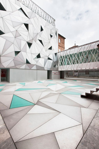 Un musée de l’illustration et du dessin contemporain se devait d’être pensé comme un lieu de lignes, non ? Et c’est l’aspect graphique qui l’a en effet emporté dans le musée ABC de Madrid. En réhabilitant une ancienne usine, les architectes ont reconstruit façades et circulations pour ajouter un effet graphique dessiné assez réussi.