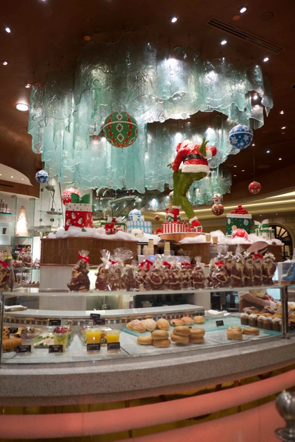 (more…)France is known all over the world for the quality of its food and patisserie. So no surprise to see a french patisserie in the Bellagio, with a french “best pâtissier”operating there. And after tasting several options, we can confirm that french quality is there. What makes the place a bit awkward is the american adaptation of french savoir-faire through decor and cakes. Enjoy the Grinch and the chocolate fountain (highest fall of chocolate in the world…) !