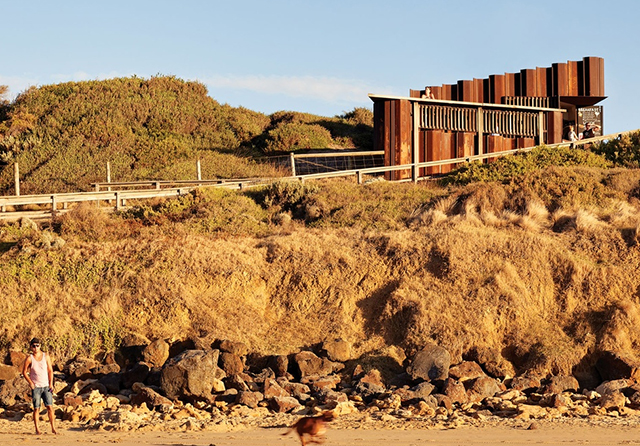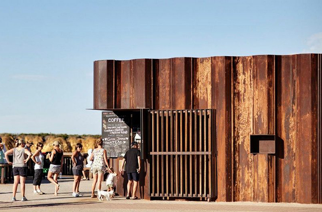 Who said industrial and nature did not fit? If you consider them in their most basic form, they go very well together, as this beach kiosk in Torquay, Australia, clearly demonstrate.
