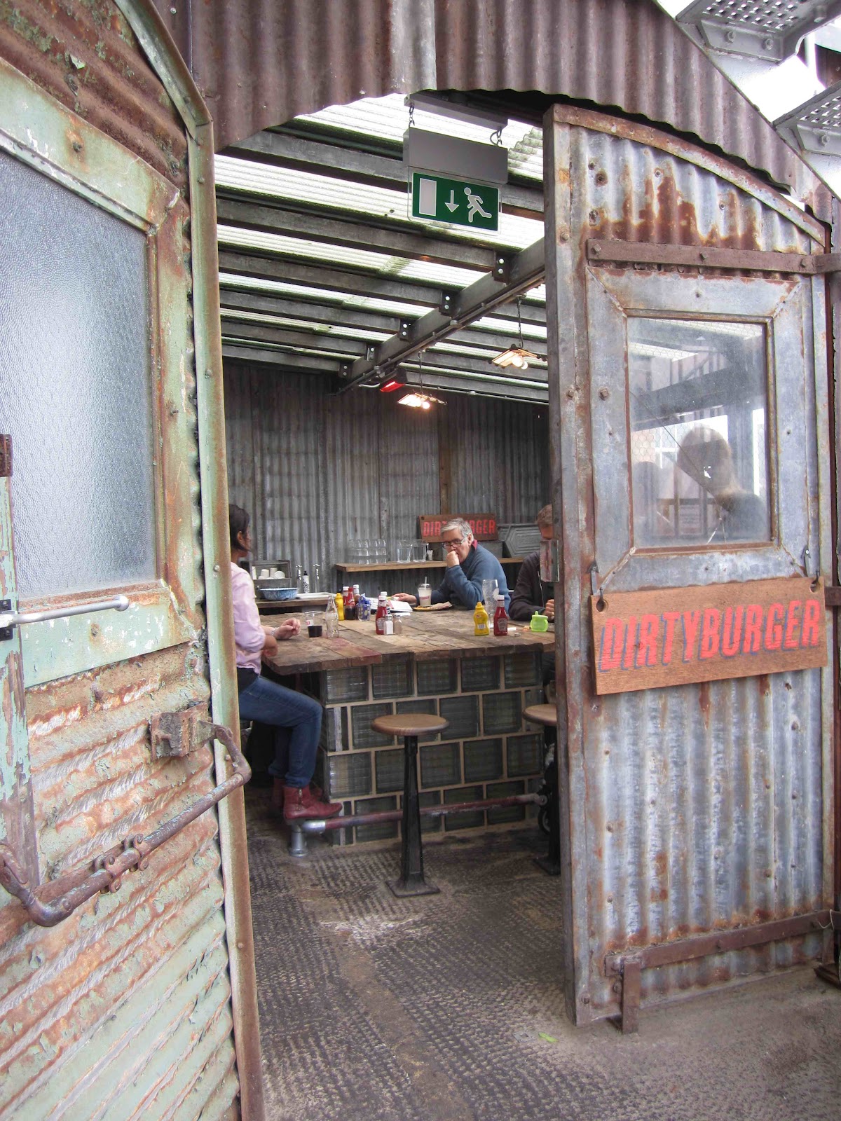 Un bon Burger n’est pas si facile à trouver. Et à Londres, l’un des meilleur burger se vit au sein d’une expérience un peu particulière: au fond d’une ruelle étroite petite, derrière un parking, dans un design très tôle ondulée orientée garage, on découvre et savoure un Dirty Burger. Union intéressant entre la qualité d’un plat très simple et une décoration vintage un peu robuste.