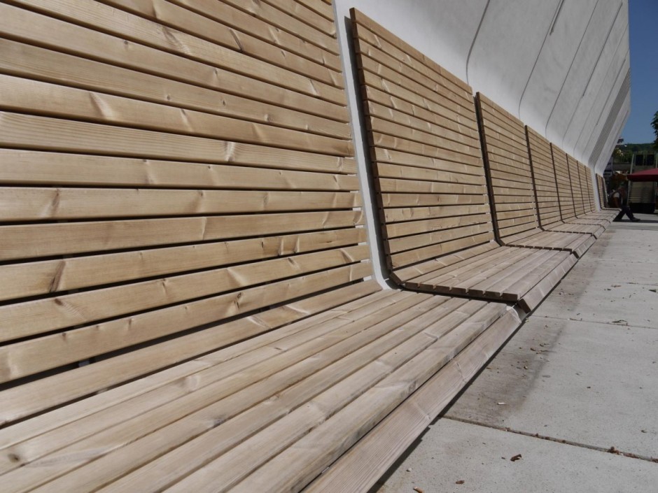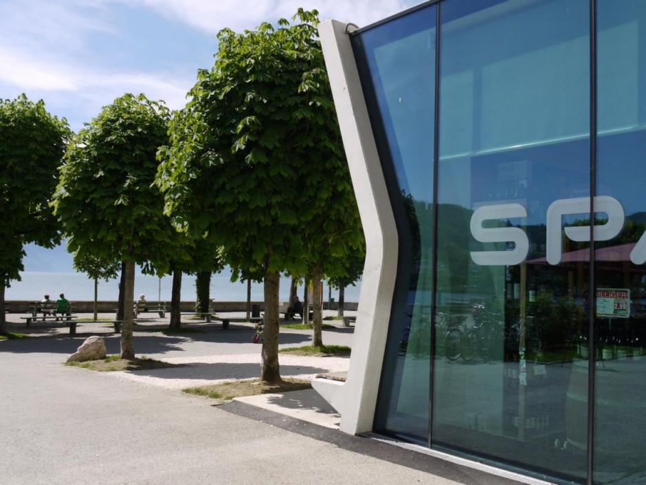 Well, it is a great -free- addition to a city supermarket ! In Gmunden, directly on Lake Traunsee, the SPAR supermarket decided to create an outdoor sitting area, perfectly adapted to local beautiful surroundings. A free, beautiful sitting place, perfectly adapted to outdoor weather.