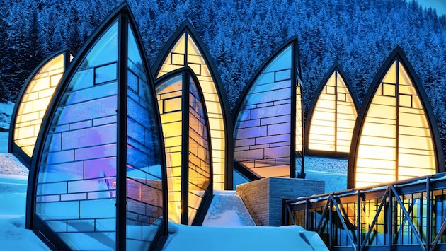 Quand on construit un spa pour un grand hôtel, on se doit de créer une ambiance de sérénité hors du commun. Et la lumière joue un rôle central dans cette sensation. Mario Botta a imaginé des puits de lumière en forme de plumes qui donnent à l’extension de l’hôtel un caractère hors du commun.