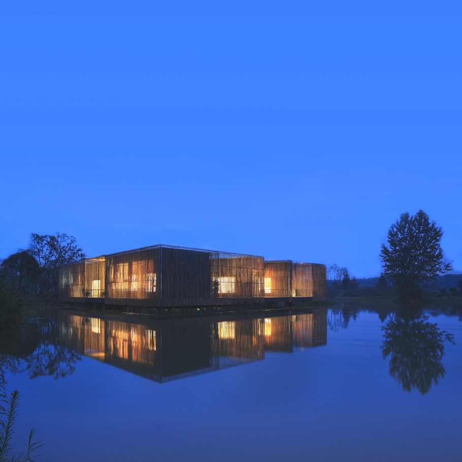 Un lieu délicat, élégant, pour apprécier pleinement une cérémonie du thé. Une beauté lacustre qui respecte les règles ancestrales des maisons de thé: centrées sur l’intérieur et dépouillées pour se concentrer sur le rituel, aux lumières tamisées pour apaiser les esprits. Une Chine gracieuse comme on aimerait la voir plus souvent.