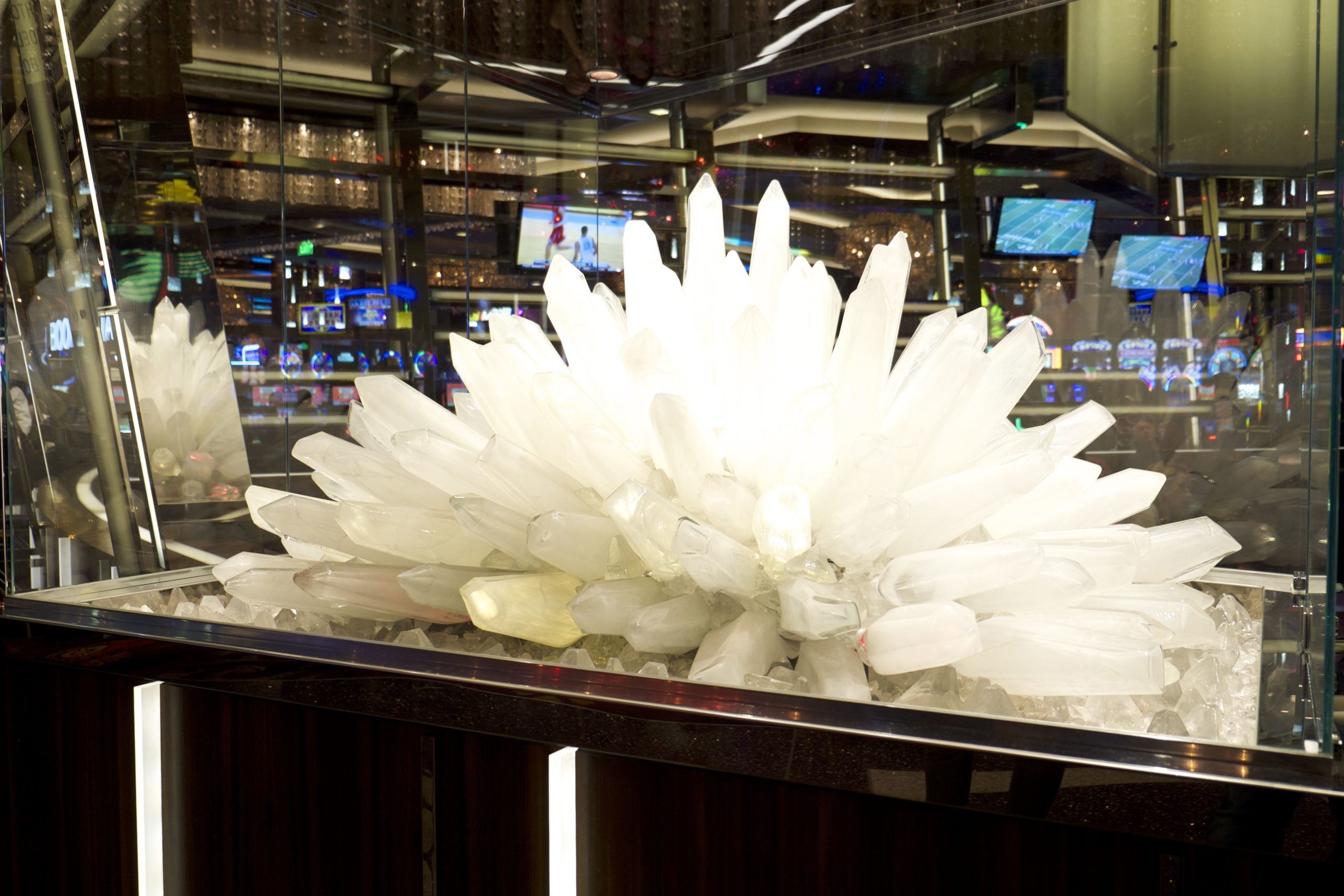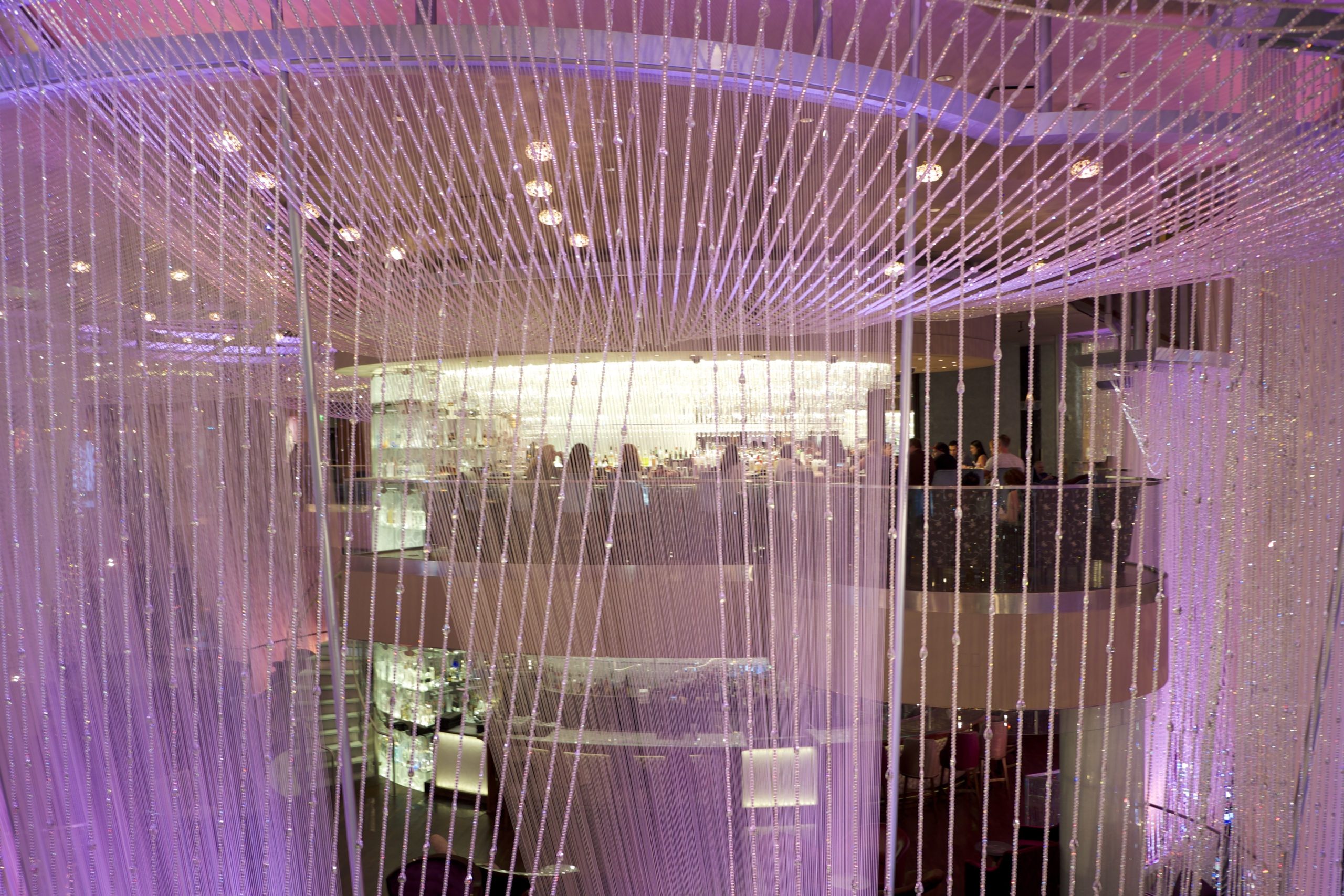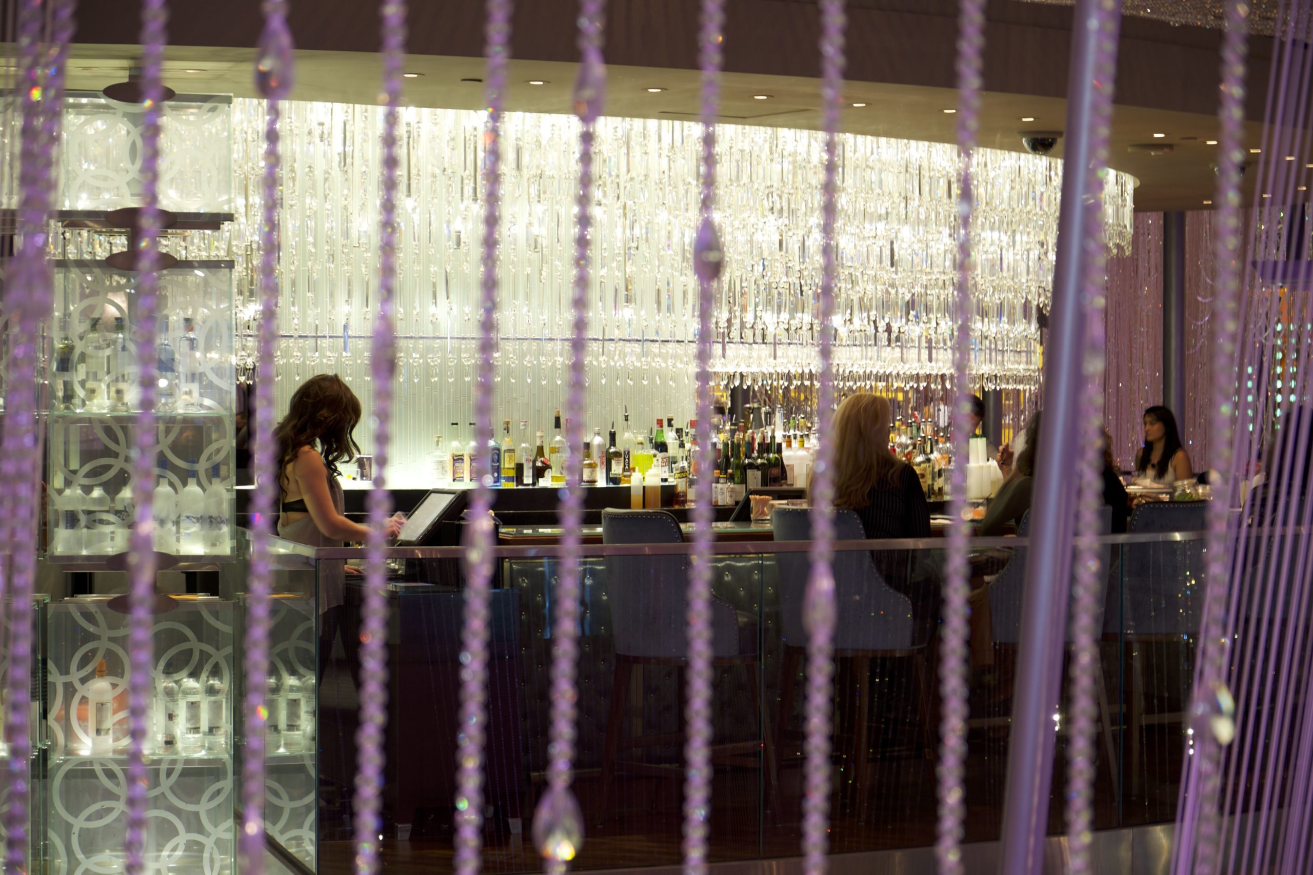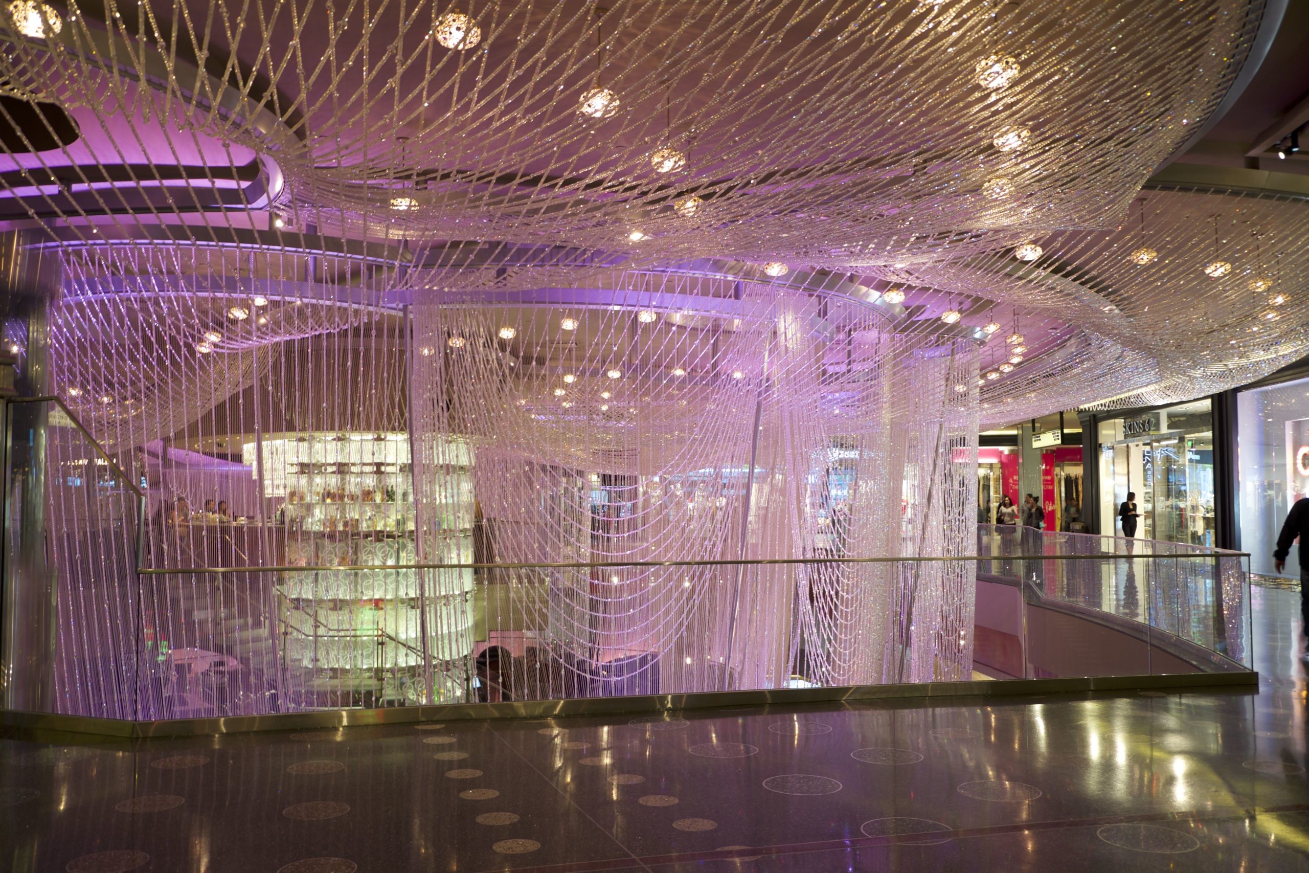 Ensuite, le lieu se transforme en un long et large couloir proposant machines à sous, jeux divers (avec une belle salle de High Limit), à la manière très classique de Las Vegas, puis des bars, dont le célèbre “bar chandelier”. Cette merveilleuse idée de bar (“flottant” sur trois étages) est merveilleusement conçu mais absolument gâté par l’emplacement car il est coincé au centre d’une rotonde ouverte, entre les escaliers mécaniques et les machines à sous.